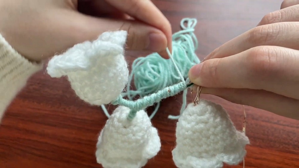 - Position the crocheted leaves along the wrapped wire.