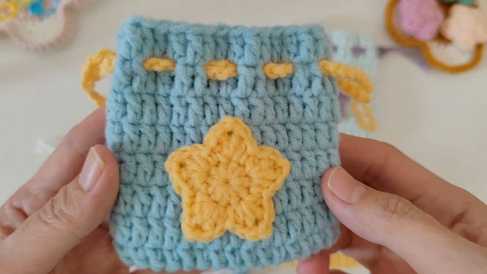 - In the demonstration, a small crocheted star is added to enhance the overall appearance of the pouch, making it more adorable and personalized.