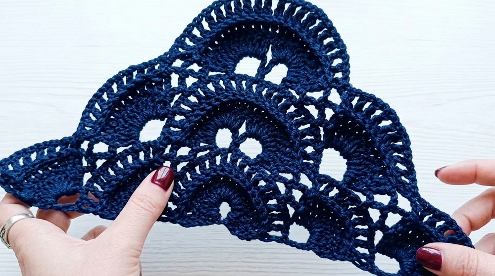 - In the last row, you can finish with a solid row of dc or add a border of your choice (shell, picot, etc.) for added flair.