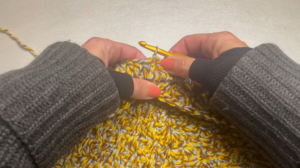 - Attach yarn at the back seam (or where desired for continuity).