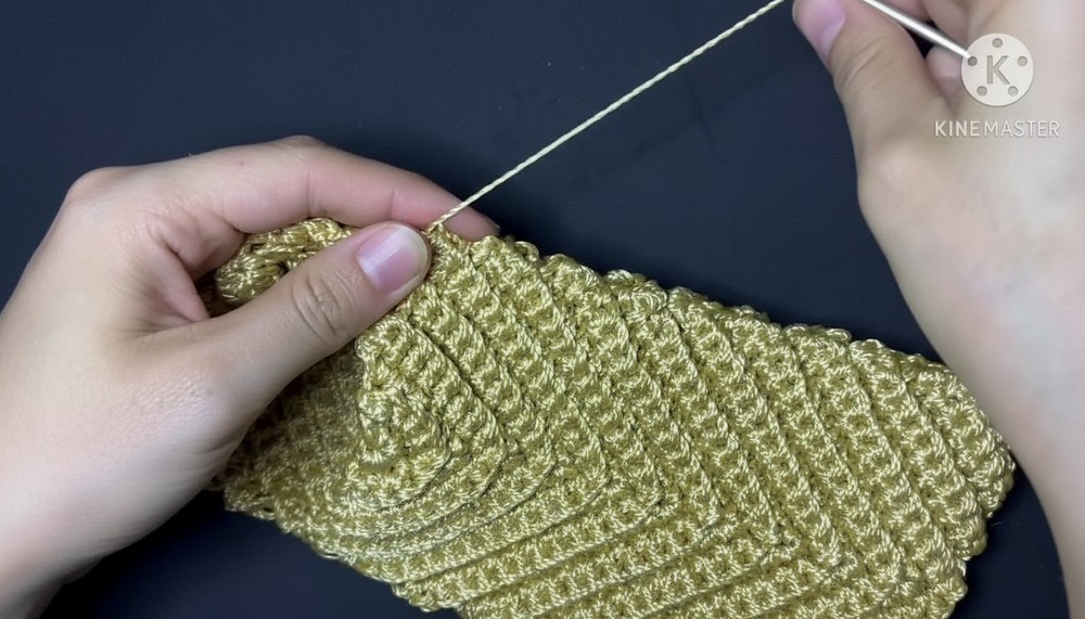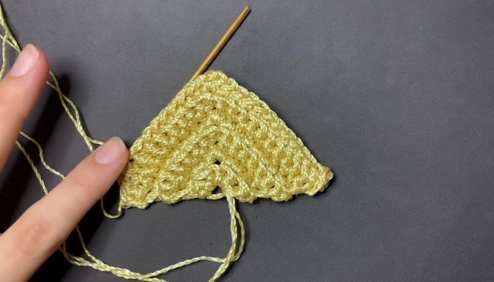 Structure: In the final row, work 3 sc in the center ch-1 space (instead of 1 sc, ch 1, 1 sc) to give the bottom edge a smoother, more rounded finish [15:01].