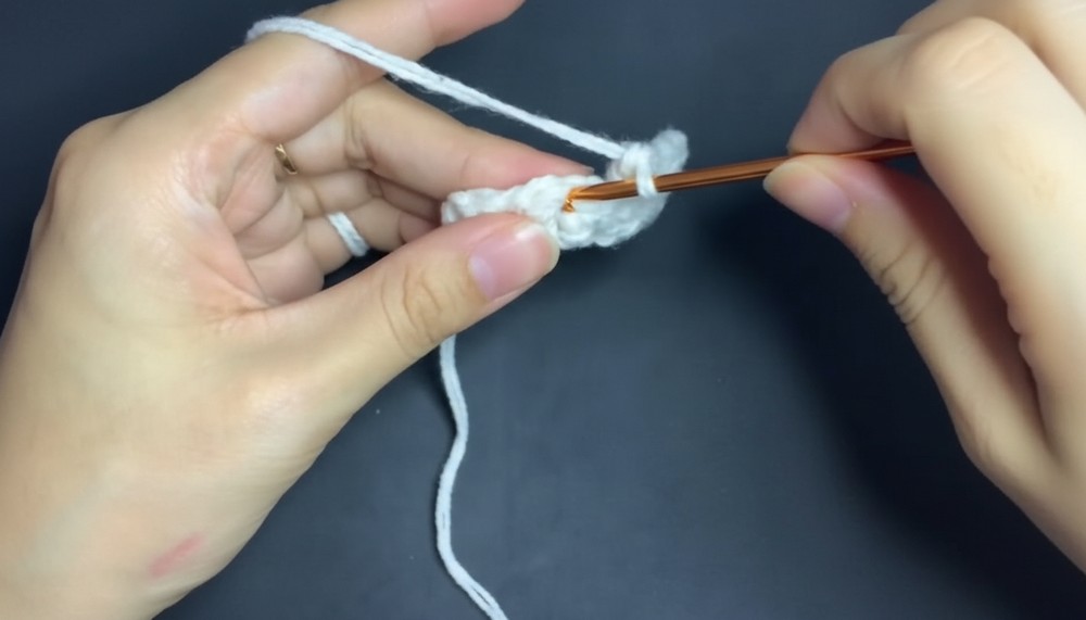 In the very last chain, work only one single crochet [04:25].