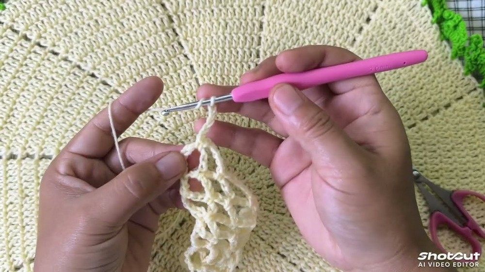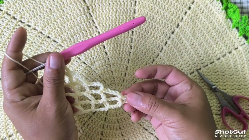 - In the first space, work 1 sc.