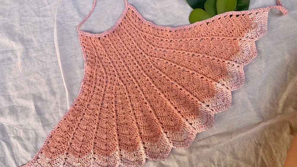The fan-and-relief texture provides a sophisticated look that mimics high-end boutique crochet. The asymmetric expansion ensures the top fits comfortably over the bust while maintaining its shape.